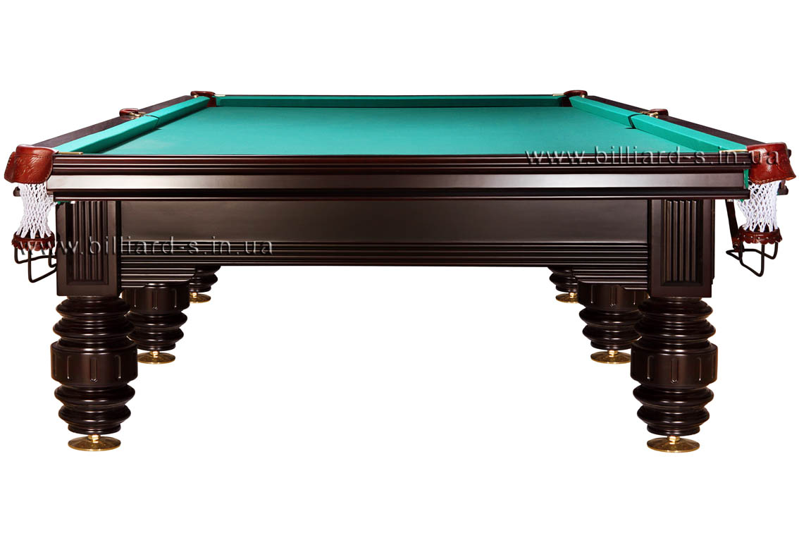 Отличие третье: Качество окраски. Деревянные части бильярдных столов окрашены по сложной технологии с использованием порозаполнителя, грунта, морилки и обязательно только двухкомпонентного лака. Поэтому на готовом изделии вы никогда не найдете прощупываемых прожилок, сучков либо древесных волокон под лаком.