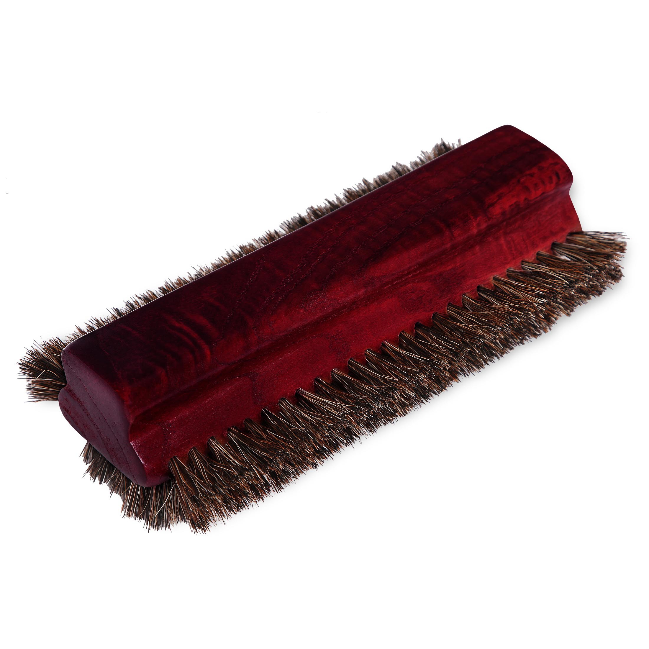 Щетка 3-х стороняя предназначена для чистки сукна на бильярдном столе, удаления пыли, загрязнений и пятен, бережной уборки ворса. В особых случаях, кроме щетки, используются специальные средства для чистки сукна. Щетка трехсторонняя, с короткой щетиной, особенно удобна для работы непосредственно у бортов столов. Щетина щетки комбинированная, из конского волоса и нейлона. Корпус изготовлен из древесины, его форма выполнена таким образом, чтобы щетку было комфортно удерживать в руке.