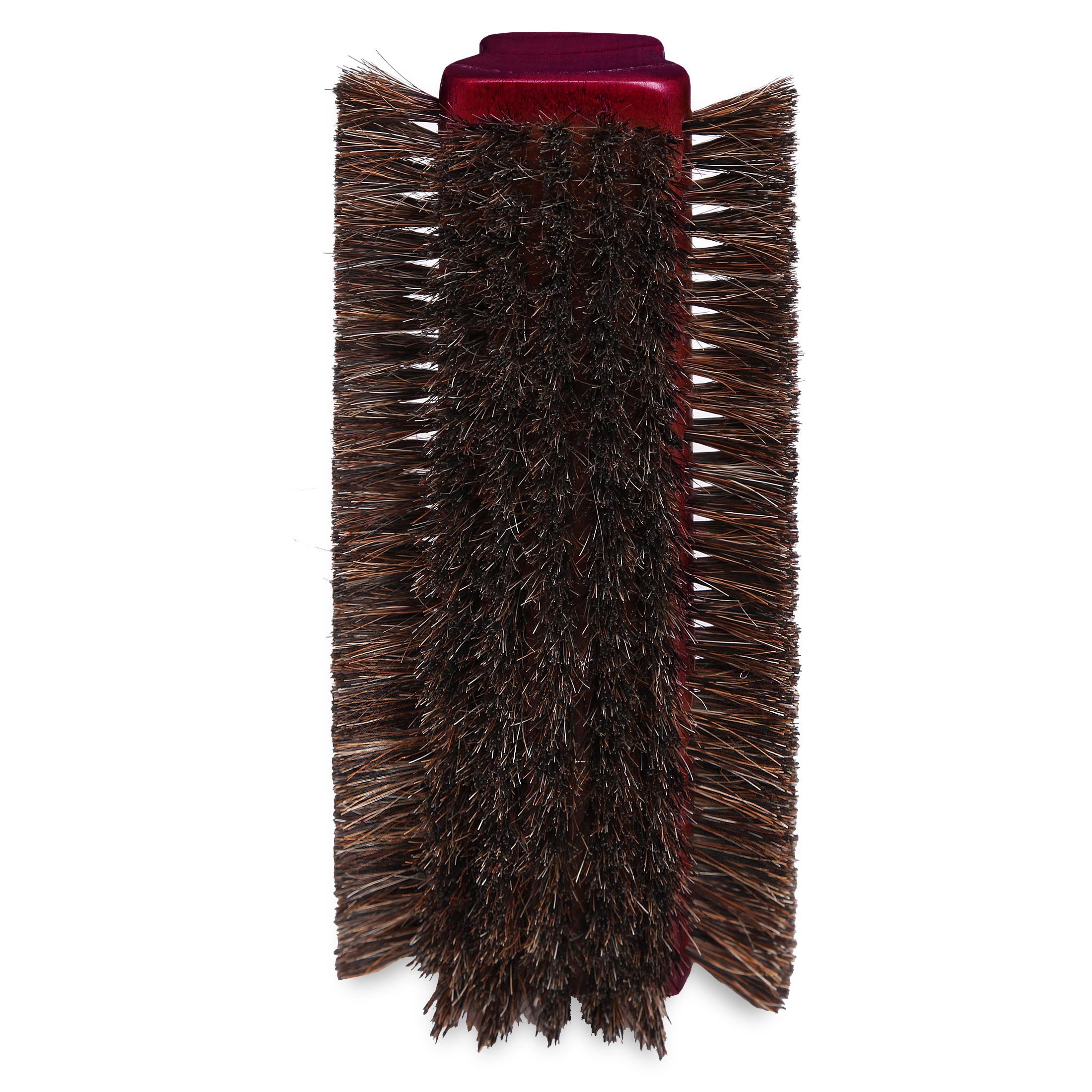 Щетка 3-х стороняя предназначена для чистки сукна на бильярдном столе, удаления пыли, загрязнений и пятен, бережной уборки ворса. В особых случаях, кроме щетки, используются специальные средства для чистки сукна. Щетка трехсторонняя, с короткой щетиной, особенно удобна для работы непосредственно у бортов столов. Щетина щетки комбинированная, из конского волоса и нейлона. Корпус изготовлен из древесины, его форма выполнена таким образом, чтобы щетку было комфортно удерживать в руке.